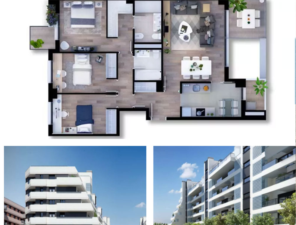 马德里新楼房-3房、4房两卫一个停车位
